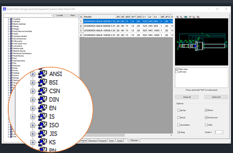 Acesta sprijină peste 10 standarde naționale și internaționale, cu peste 400.000 de piese standard. Puteți genera vizualizări de piesă cu ușurință prin selectarea parametrilor.