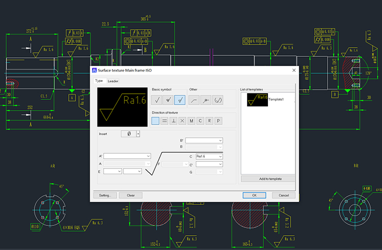 Creați cu ușurință simboluri precum textura suprafeței, toleranța geometrică și simbolurile de sudură. Acesta acceptă editarea directă prin compararea dublă și salvarea parametrilor ca șabloane.