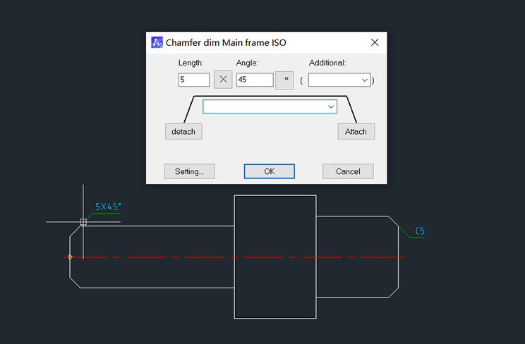 Alegeți dintr-o varietate de stiluri de dimensiuni pentru flexibilitate în desenele dvs. Generează rapid dimensiuni prin selectarea liniilor de chamfer.