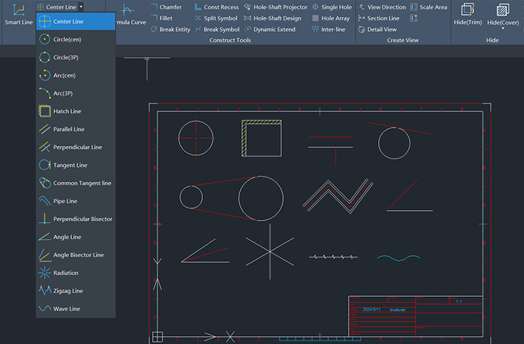 Eficiența de desen cu peste 40 de instrumente de desen, inclusiv Smart Line, Center Line, Mirror Line, Hatch și multe altele.